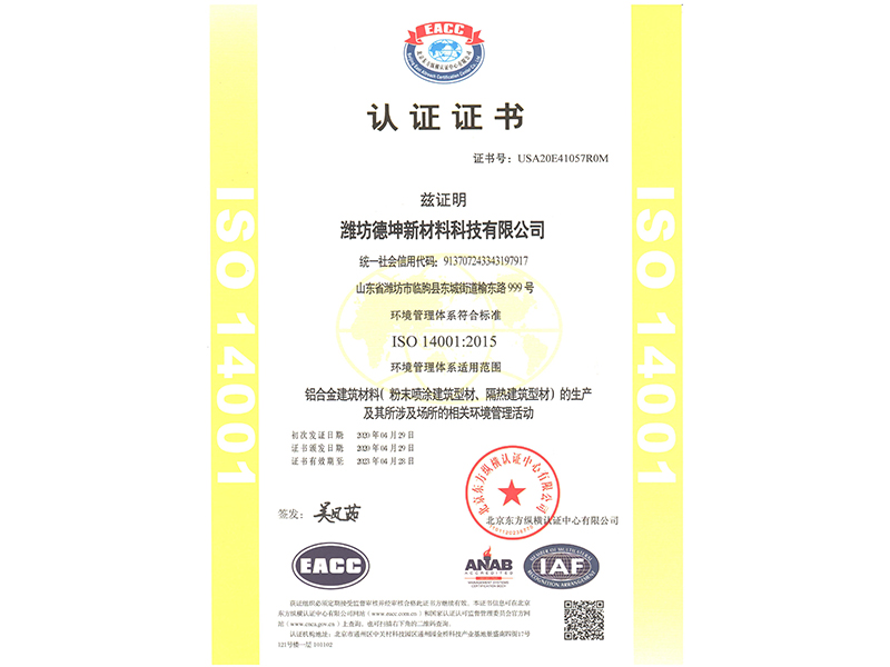 环境管理体系认证证书